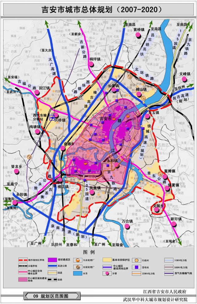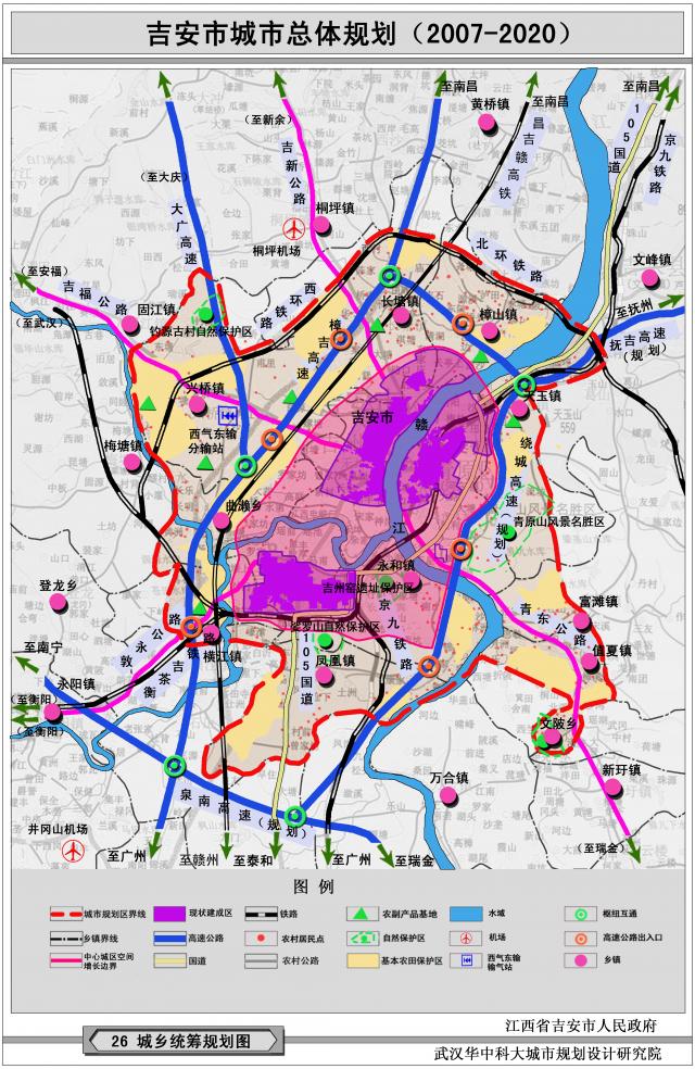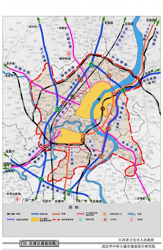 赣中地区交通枢纽和区域中心城市,以红色旅游和庐陵文化为特色的山水生态园林城市。