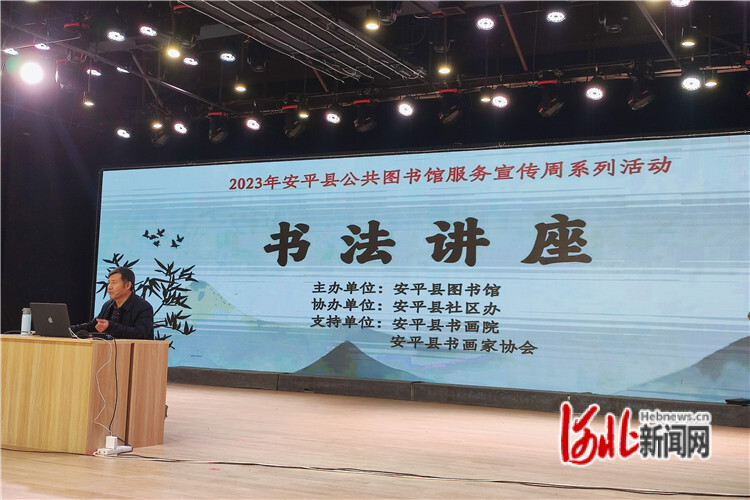 河北新闻网讯(何云兰、代景栋)为弘扬传统文化,推动书法艺术传播传承,12月5日,衡水市安平县图书馆公共文化空间特别邀请中国书法家协会会员、著名书法家李猛举办了一场精彩的书法公益培训活动,安平县50余名书画爱好者在现场聆听讲座,同时,讲座采用网络直播形式向广大群众开展线上培训,到活动结束,共有2.68万人观看直播。