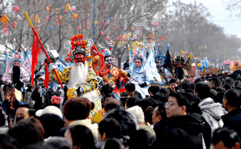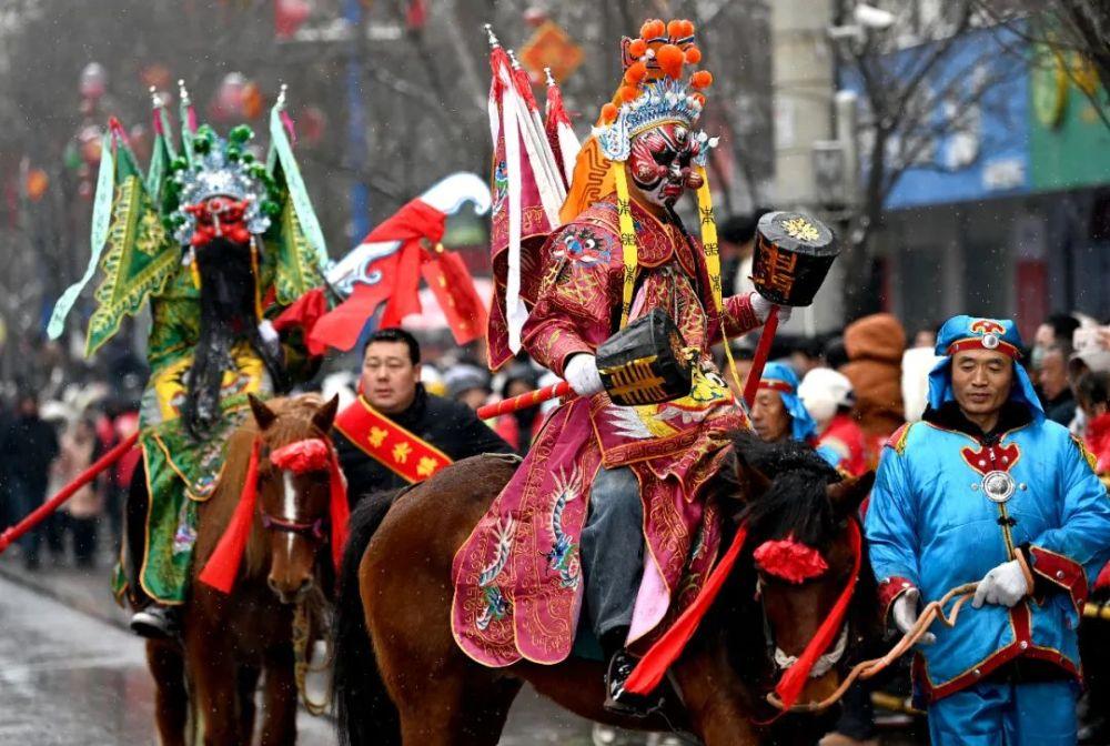 陕西省宝鸡市陇县社火巡游活动上,马社火在进行表演。新华社记者 刘潇 摄