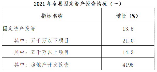 完成固定资产投资增长13.5%。在固定资产投资中,5000万元以上项目投资139个,完成投资额占固定资产投资总额比重为83.1%。
