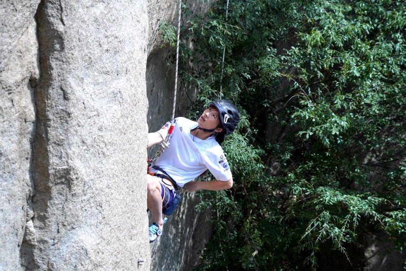 专业组女子难度速度赛冠军黄伟君比赛瞬间
