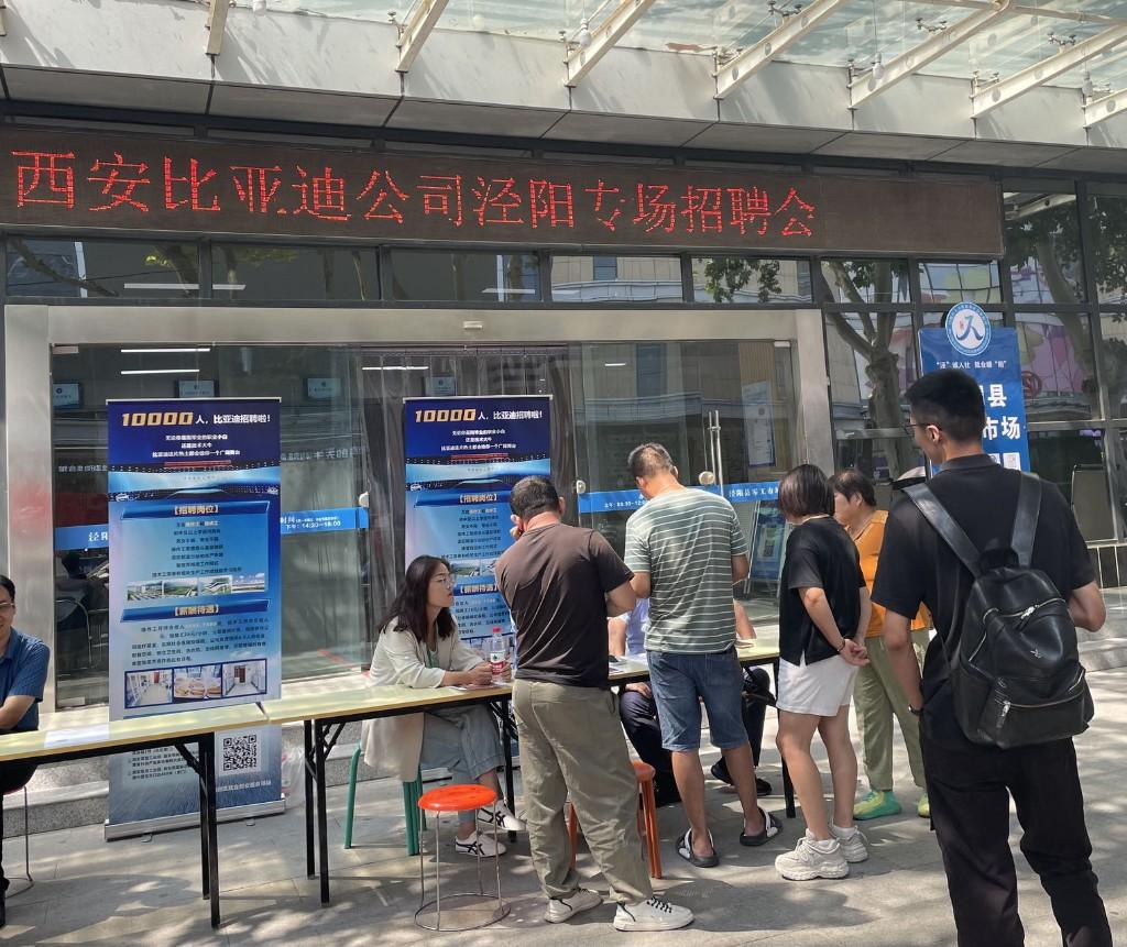 三秦都市报-三秦网讯(刘斌 记者 黄艳)近日,咸阳市泾阳县人社局、泾河新城组织和人力资源部协同西安高新区党工委组织人事部成功举办“西安高新区就业服务走进泾阳县”活动。活动现场,邀请比亚迪招聘负责人进行现场招聘、求职登记和现场面试。同时,泾阳县就业公共服务中心工作人员向求职者推荐县内外最新招聘需求,为现场求职者提供更多岗位选择。