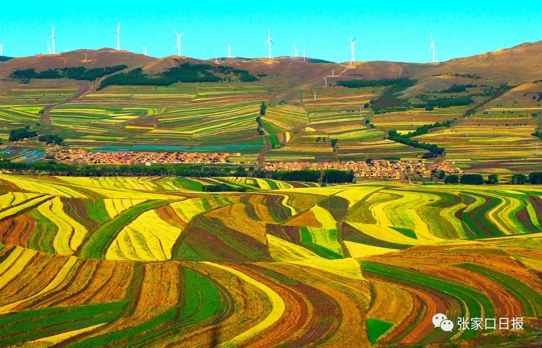 金秋九月,在崇礼区桦皮岭田野和山峦间,层次分明的梯田 、金黄色的莜麦、一望无际的绿色、数不清的风电……构造出一幅幅如诗如画的生态蓝图。 陈飞 摄