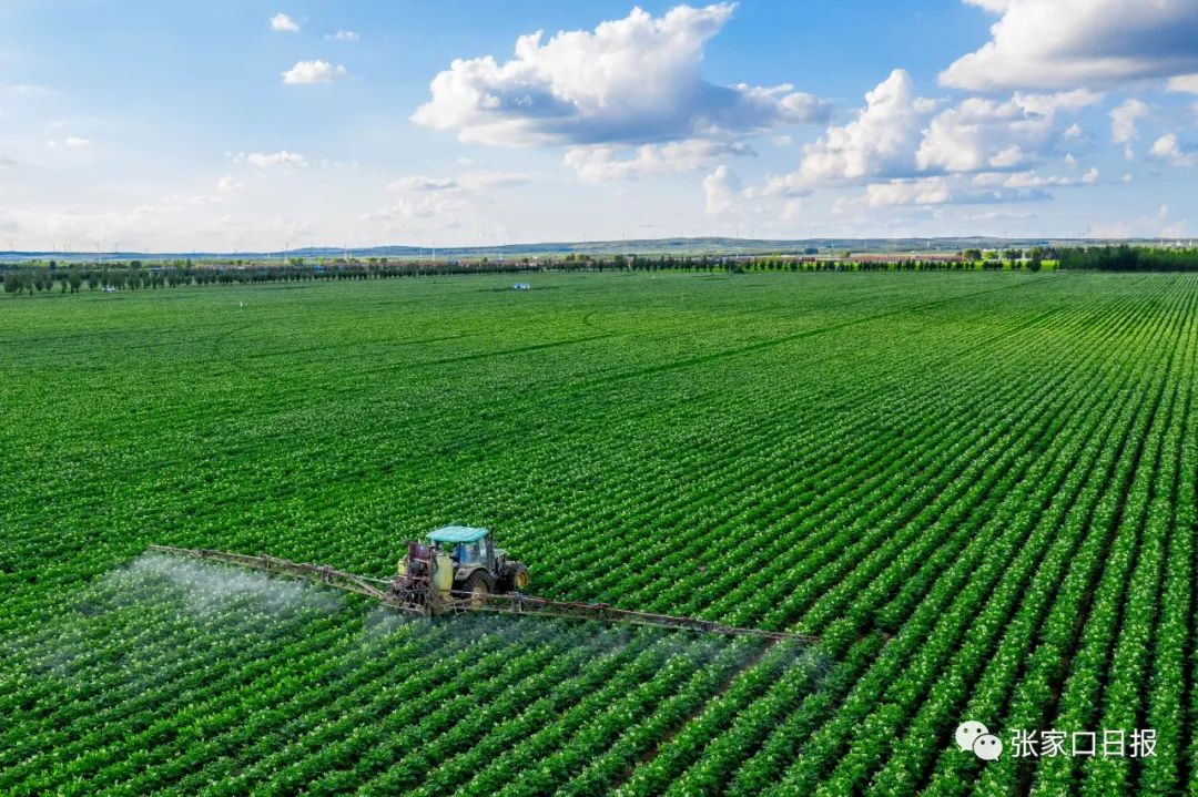 时至盛夏,察北管理区雪川农业通过科学规范化种植、精细化管理,种植基地的马铃薯花开正茂,长势喜人。目前,该企业拥有18万亩自营机械化现代农场、3座马铃薯仓储物流及精深加工产业园,年繁育各等级种薯15万吨,年加工马铃薯30万吨,带动农民增收42亿元以上。陈亮 辛海成 摄