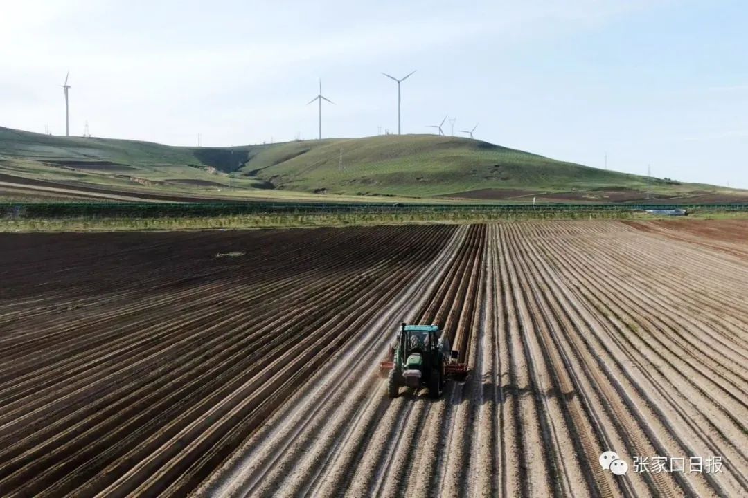 连日来,在沽源县马铃薯种植基地,农民们正在进行机械化作业抢抓农时播种马铃薯,一台台播种机在一条条整齐的深垄间来回穿梭,田间地头一派忙碌景象。
