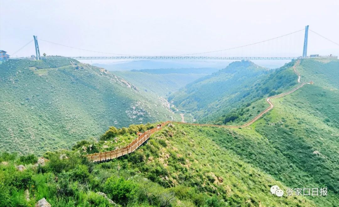 放眼张家口市尚义县大青山国家森林公园,满山翠绿,风景迷人,全长639米的玻璃吊桥,与钟灵毓秀的青山融为一体,宛若一幅独具特色的山水画。马佳琦 摄