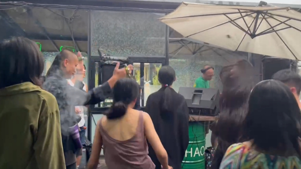有天一个酒吧要歇业了,办了个派对,有很多音乐人,离我工作的咖啡馆非常近,我下班就直接过去,那天这个派对从下午一直(开)到凌晨三四点,各式各样的人都在一起玩。我发了朋友圈:夜生活,从下班10分钟后开始。