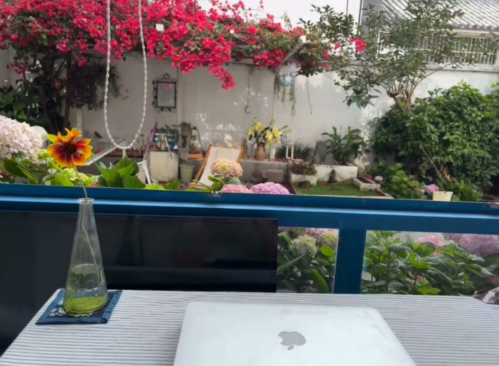 那时候大理有共识社区、共居空间。我早上10点会下楼去院子里的工位办公,制定每天的计划、发邮件、处理一些比较急的事情。我住的共识社区一楼有一排工位,正对着我们的小院,大家白天会一起在这里办公,有做web3、导演、留学咨询的。下午我会找个咖啡馆作为工位。