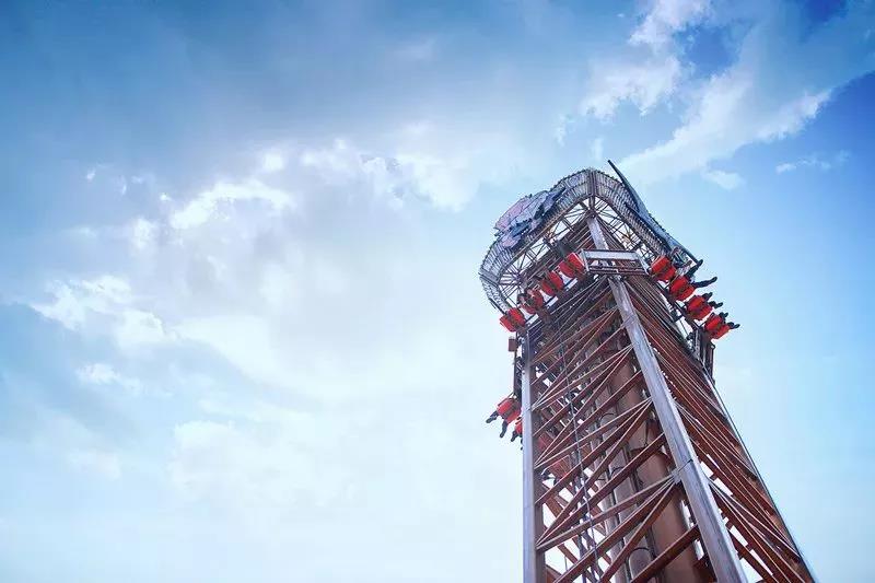 通天塔从80米的高空俯瞰整个恐龙园,这个视角真是非常美。但是一不留神,一个极速下坠,再一个极速飞天,超重失重只在一瞬间,只有拥有一颗大心脏的勇士才能挑战,恐高的人可以考虑,自己要不要游玩哦, 因为极速的下滑,或者是上升都会让你感觉很爽的呢!
