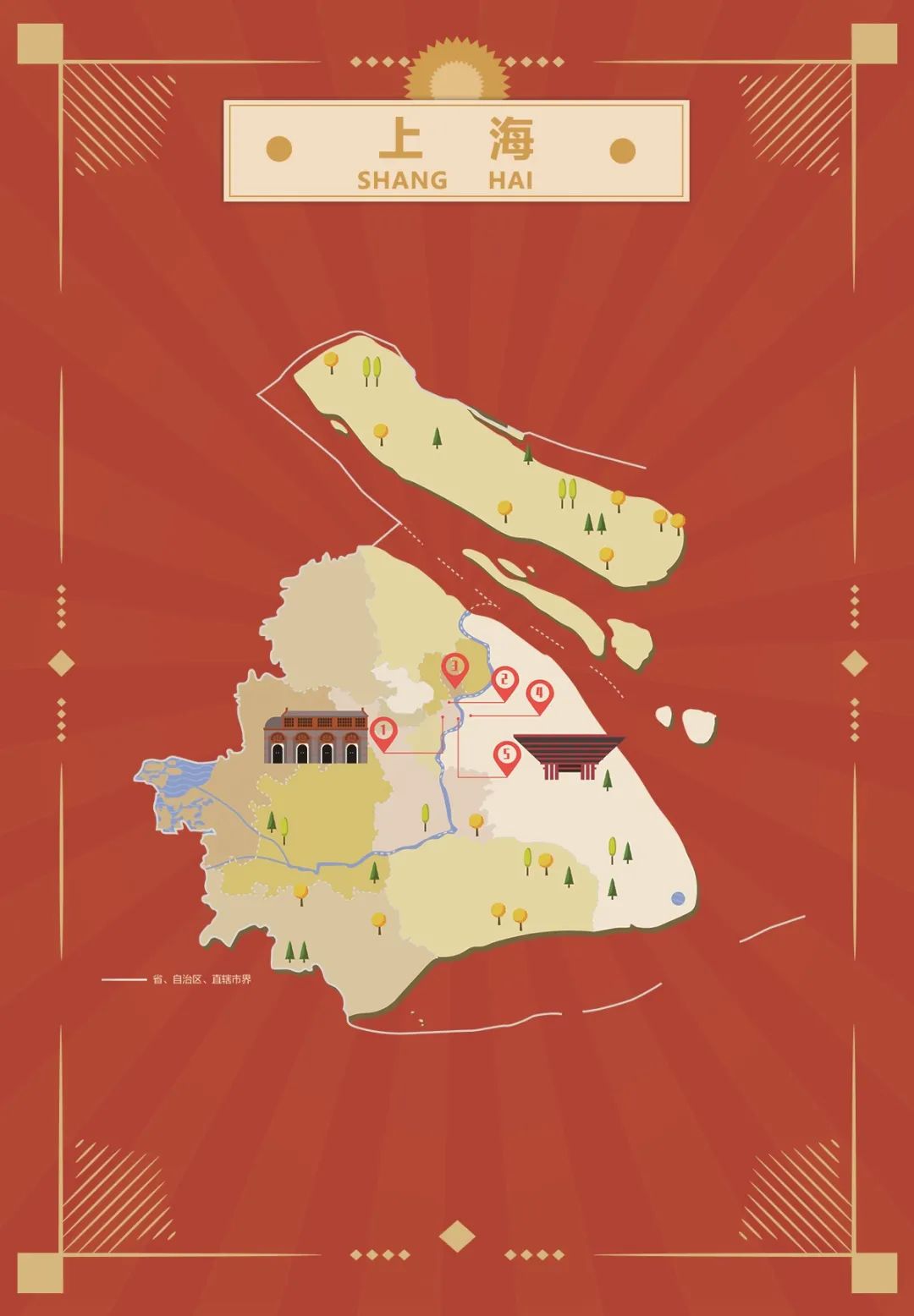 澎湃新闻与中国地图出版集团联合推出了“建党百年,初心之路”红色地图主题纪念卡。这套纪念卡以地图为载体,将澎湃红色大巴车途径之地的红色元素集中呈现在了地图上,通过地图中的标识,更加直观地展示当地红色文化地标的分布,展现党的发展历程和红色文化的传承。