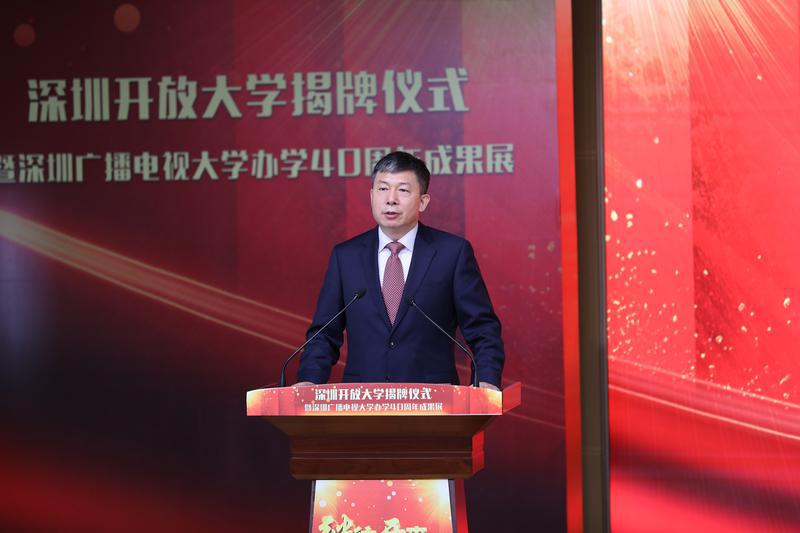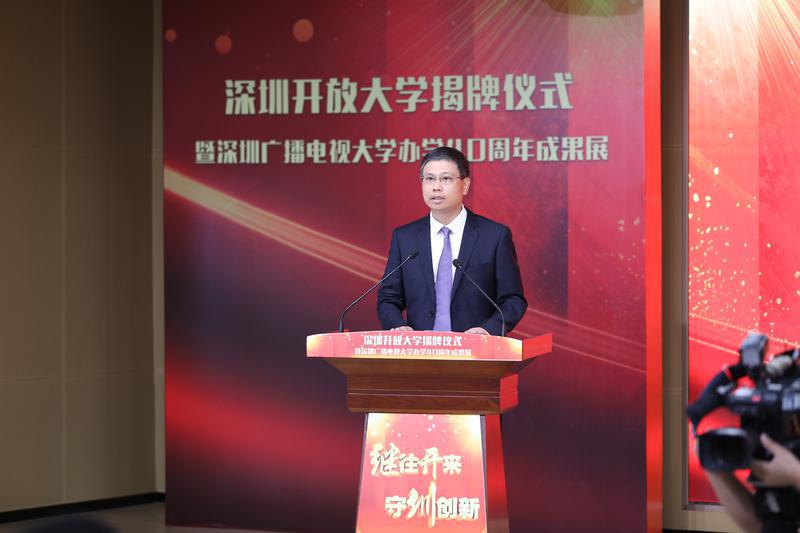 3月20日,深圳开放大学揭牌仪式暨深圳广播电视大学办学40周年成果展隆重举行。深圳市委常委、宣传部部长王强,深圳市人民政府副市长聂新平,国家开放大学党委书记、校长荆德刚,市委教育工委书记、市教育局局长陈秋明,国家开放大学副校长林宇等出席活动并为深圳开放大学揭牌。