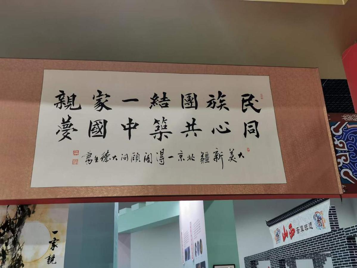 北京展区《民族团结一家亲》字画 寇梦茜摄