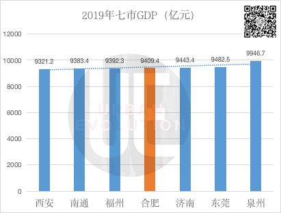 2019年,合肥GDP9409.4亿元,同比增长7.6%,距离万亿俱乐部仅临门一脚。安徽省政协委员陈晓波预言,2020年合肥将迈入万亿俱乐部,成为长三角第7个万亿城市。