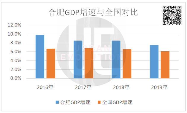 事实上,近年来合肥的GDP增速一直在高位运行。2016年年平均增长速度9.8%;2017年为8.5%、2018年保持8.5%,2019年(修订后)则为7.5%。