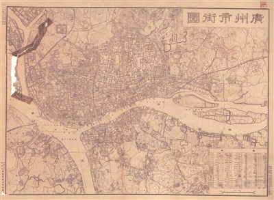 《广州市街图》成图于1949年,中国人民解放军东北军区司令部依据1920年所定地形图图式,于1949年五月印制。图上所反映的基本是二十世纪二十年代的信息,如市政所、海珠公园、中山纪念堂、中山大学(在文明路)等。据此推测该图可能是解放军准备进入广州市而印制。