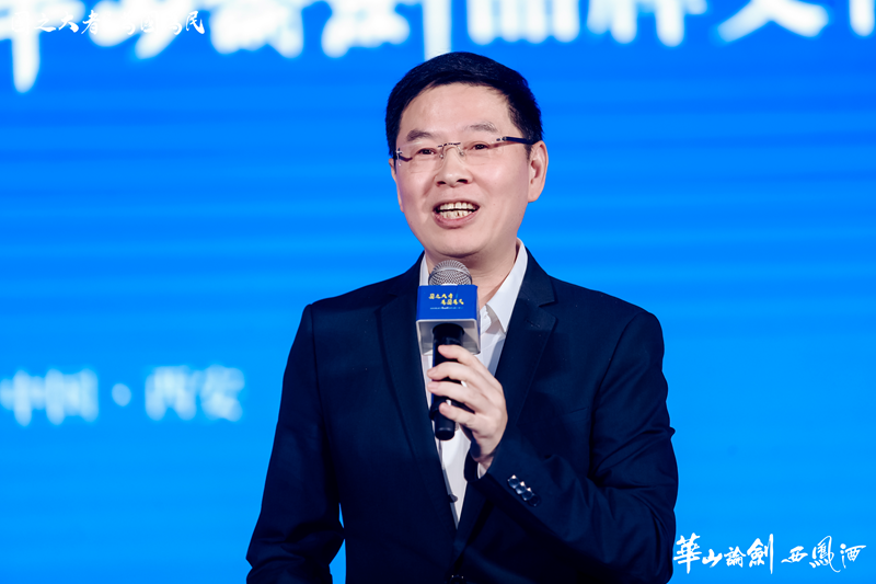 “我突然想起1200年前,在长安街头发生过一次非常有名的‘追尾事件’,一位叫贾岛的诗人,撞了韩愈的车队,诞生了非常著名的‘推敲’典故……”郦波教授从一个小故事开始,娓娓道来,引人入胜。他讲到,“我们站在华山绝顶上论剑、论道、论智慧,每一个有良心的知识分子要为家国,也要为天下。今天站在人类文明的视野上,我们应该像1200年前的韩愈一样,以有一种海纳百川、有容乃大的胸怀,肩负起民族复兴和人类命运共同体的重任,才不负中华文明的薪火相传。”