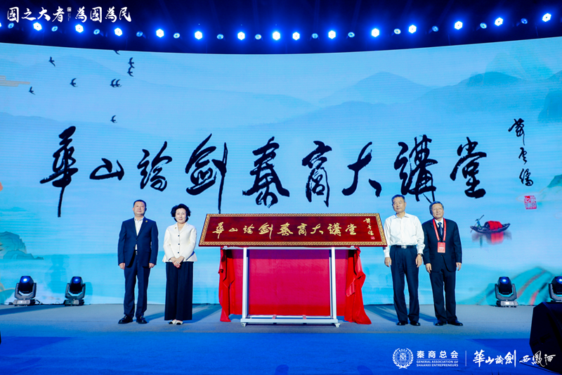 9月21日下午,秦商总会与华山论剑西凤酒联合开设“华山论剑·秦商大讲堂”,西安交大党委副书记、校长王树国,秦商总会会长、正大制药集团总裁郑翔玲与秦商总会副会长、华山论剑品牌管理有限公司董事长董小军等为“华山论剑·秦商大讲堂”揭牌。
