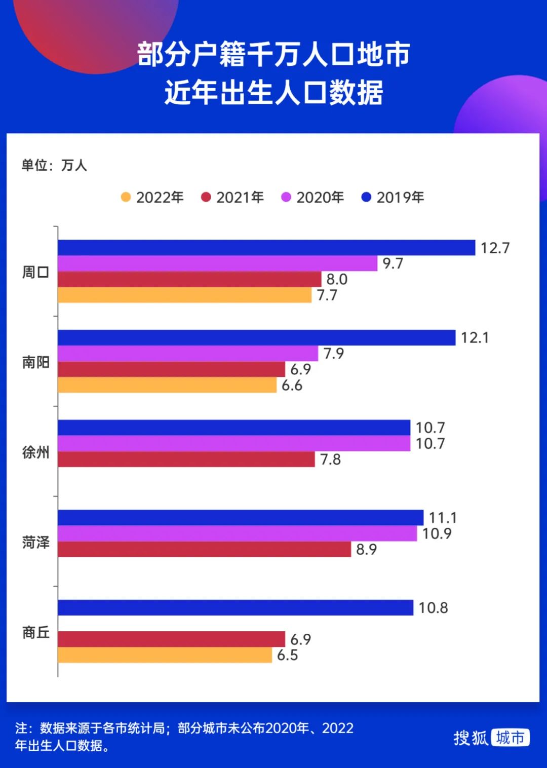 普通的户籍人口大市,出生人口基本已跌破10万大关。比如周口和南阳,人口总量在1200万量级,但2022年出生人口分别仅有7.7万、6.6万,较疫情前的12万大幅缩水。