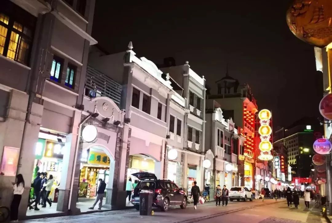 夜深人群散去,它风采依旧,步行街的骑楼建筑连绵千米,在保留西关传统建筑风格的基础上,融入南欧建筑特色和中国北方满洲式装饰。