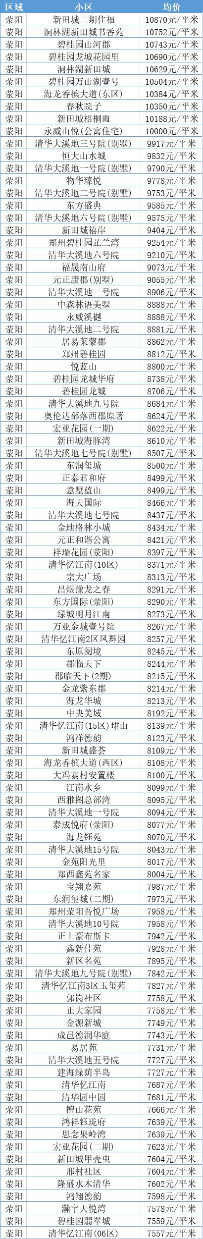 荥阳11月二手房均价 7760 元/m⊃2;