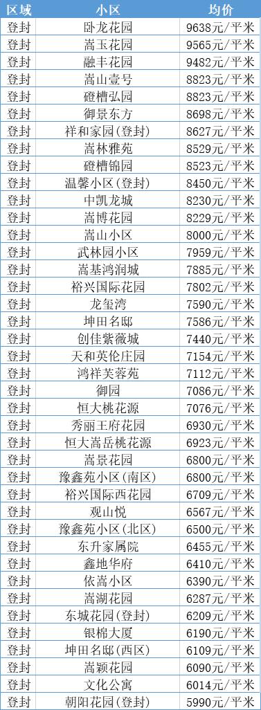 登封11月二手房均价 6838 元/m⊃2;