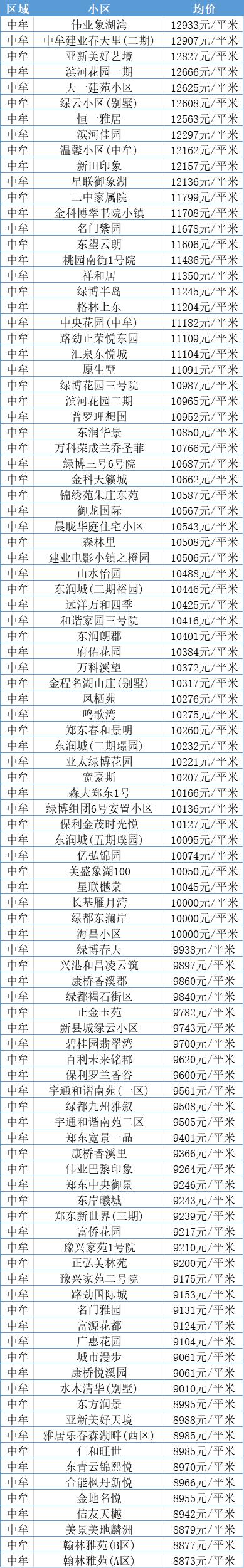 中牟12月二手房均价 9963 元/m⊃2;