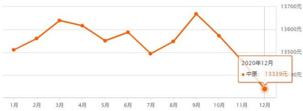 中原12月二手房均价 13339 元/m⊃2;