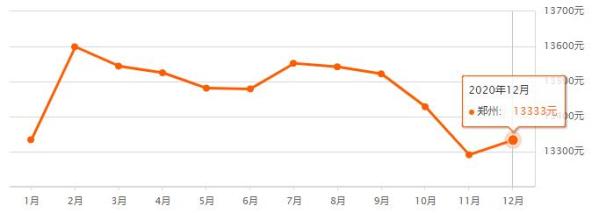 郑州12月二手房均价 13333 元/m⊃2;