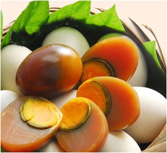皮蛋的清,盐蛋的黄,蛋黄的周围有天然的蛋黄油,蛋黄翻沙,蛋清嫩、香,富有弹性,食用香醇可口,回味无穷。