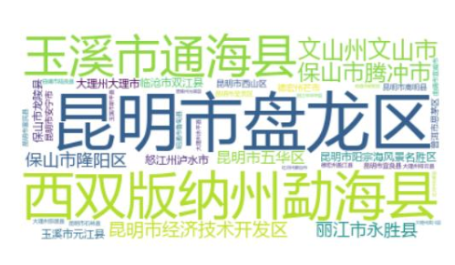2022年云南“10大名品”基地所在地区拟表彰品牌数量词云