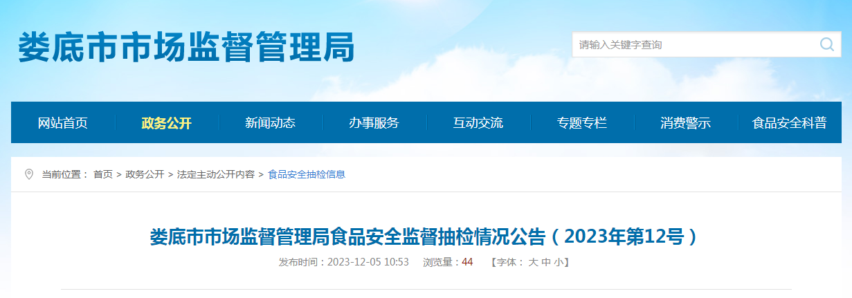 湖南省娄底市市场监督管理局食品安全监督抽检情况公告(2023年第12号)