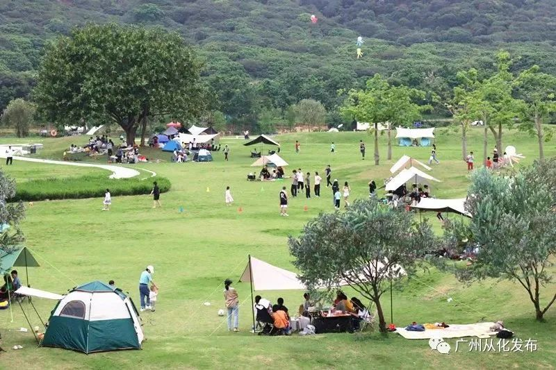 风云岭湿地公园作为广州市第一批24个公园绿地草坪帐篷区域之一,成为从化热门的露营憩息好去处。铺上野餐垫,备好最爱的美食,便可以在这里无拘无束地谈天说地,享受着大自然风光和清新的空气;孩童们则在草地上肆意地奔跑嬉戏,度过轻松自在的童年时光;除此之外,还可以徒步登顶风云岭,一整个从城风光尽收眼底!肆意享受完大自然给予的清幽和宁静,还可以前往附近的艾米小镇稻花香小院品尝农家菜,到粤清香特产体验馆、大山土特产等店购买从化“一村一品”特色农产品,品尝从化网红产品。