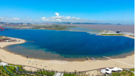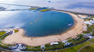 其中,值得一提的便是近些年炙手可热的宁波蓝海旅游景点——宁波梅山湾新城·万人沙滩。