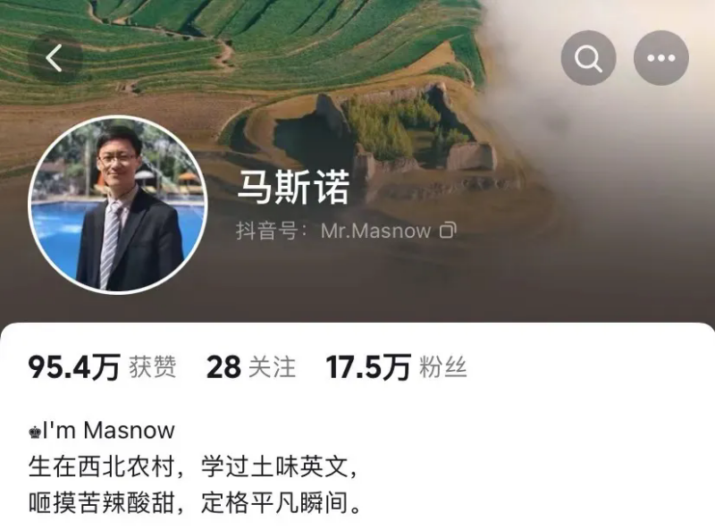 抖音上还出现了不少@马斯诺 的模仿者。他们站在全国各地的田间地头,讲着英文,描述起家乡特产,有卖石榴、芒果的,甚至连销售烟花也有人用这种形式。在@马斯诺 的印象中,最成功的是甘肃天水的一位女记者,她给本地土豆引来了不小的关注。面对这些“高仿”,马斯诺显得极为宽容,“这也是我们该担负的使命,在这个商业实践的背后,其实是无数人的饭碗”。