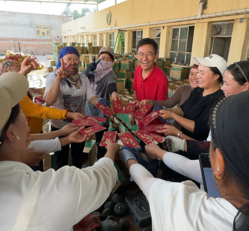 不只是亲朋,@马斯诺 和马昊东还将当地的乡民带入这片新鲜的场域。像贝贝南瓜的装箱、称重、码货,全部经由老乡之手,换言之,每件农产品身上,还承载着本地人的温度。对普通的百姓而言,这也是在务农之外相当可观的收入。一场蝴蝶效应,在西北的这个小县城徐徐发生。