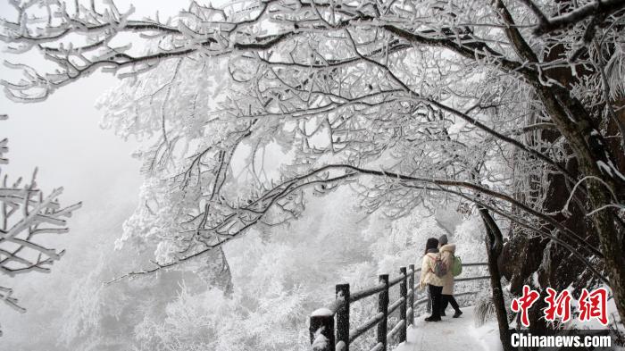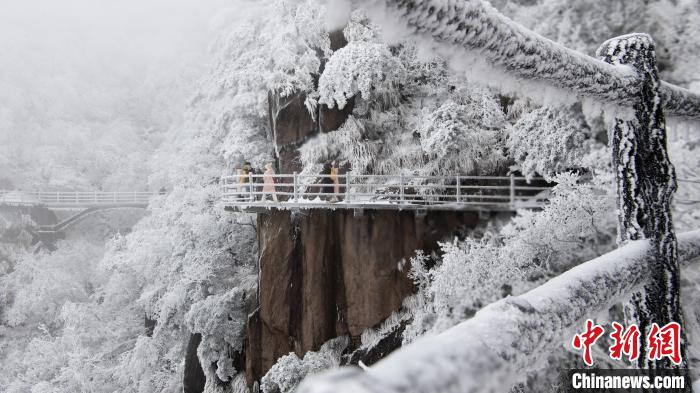“好美啊!”游人忍不住赞叹道。沿着山路继续前行,来到山顶,耳边的风,让山更加寂静。山峦朦胧,雪花飞舞,让人缓下脚步、静下心来,感受这一刻大自然的魔力。