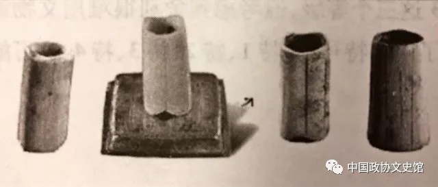 从位置上说,第一枚在后室北壁正中且以懿宗赐赏的以红锦袋包裹的八重宝函盛放。这是地宫中最重要的部位,而所有的宝器衣物、天王力士,全部以此枚舍利为中心,供养或翊卫于周围,应是懿宗、僖宗认定并供养过的真身舍利。同时,在地宫内出土的《大唐咸通启送岐阳真身志文》碑上记述“长一寸二分,上齐下折,高下不等,三面俱干,一面稍高,中有隐迹,色白如玉少青,细密而泽,髓穴方丈,上下俱通,二角有文,文并不彻”等语,与第一枚佛骨完全吻合。至于佛骨为玉质,似乎令人难以想象。然而宪宗在元和十四年迎佛骨时,曾有《赞舍利诗》一首,诗云: