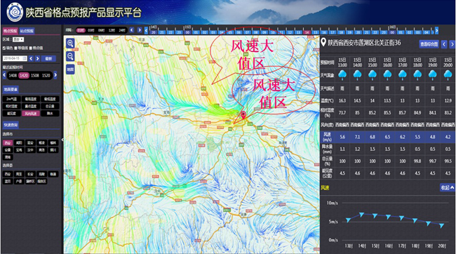 陕西省格点预报产品风场预报。唐宇琨 供图