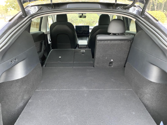 Model Y相比于Model 3轴距增加了1.5厘米,所以腿部空间的表现两车相差是不大的,加长的轴距和车长在后备箱就体现了出来。
