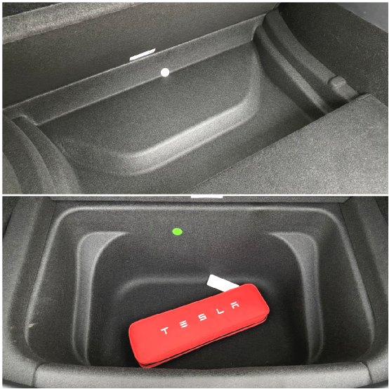 得益于SUV的造型,后备箱的开口自然是比轿车Model 3更大,搬运物品的进出也更加方便,并且还可以支持4-2-4三个座椅独立分隔放倒,可以更方便拉一些长条状的家具物品。由于Model Y在部分市场地区是提供7座版车型的,所以原先安装座椅的位置也改为了一个小面积的储物格。除此之外盖板下的地台也有一个比Model 3更深的储物格,可以多放个背包。