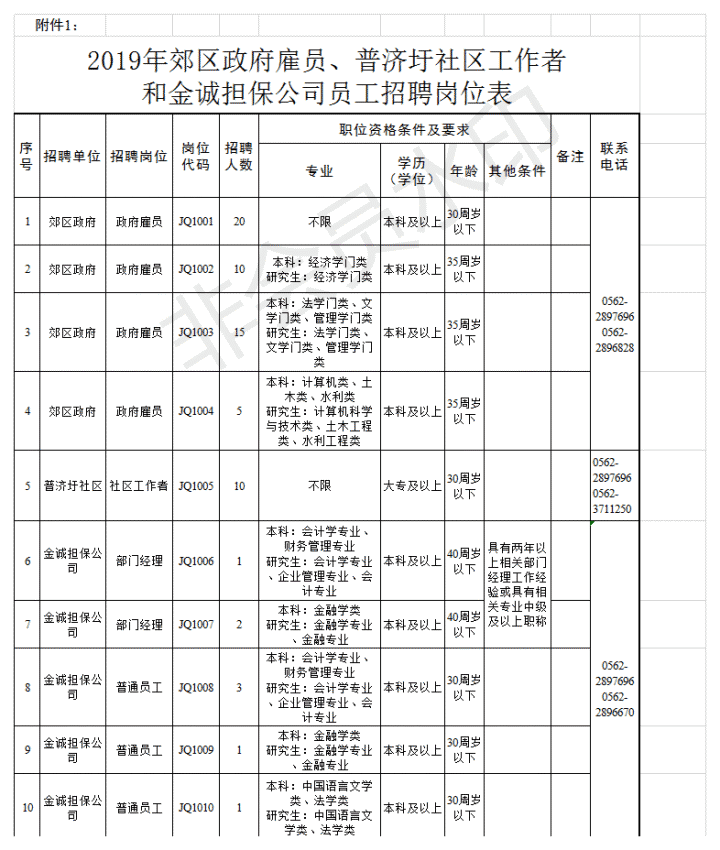 安徽网 大皖客户端讯 近日,铜陵市人社局发布《2019年郊区政府雇员、普济圩社区工作者和金诚担保公司员工招聘公告》,因工作需要,经研究,将面向社会公开招聘50名郊区政府雇员、10名普济圩社区工作者和8名金诚担保公司员工。