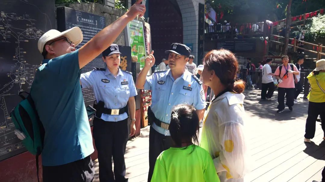 张军荣和同事在山间巡逻时,不时有游客过来咨询。他们总会耐心解答,是一本行走的“山间指南”。