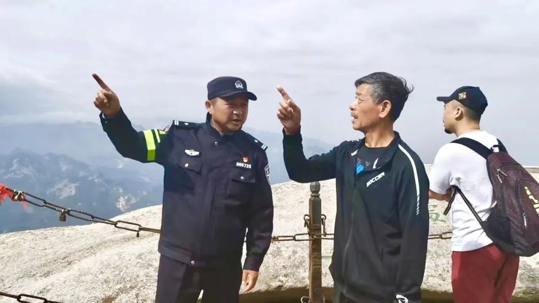 类似的求助警情,华山西峰警务室的民警们几乎每天都会遇到。张军荣和同事们救助过的游客更是不计其数,有受大风影响索道停运被困山上的游客,有突发疾病的游客,还有外籍游客。