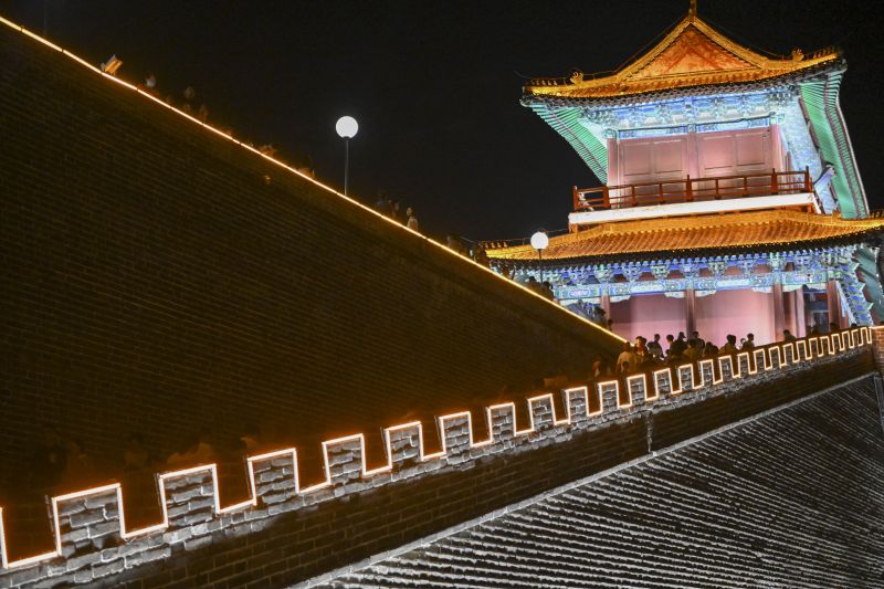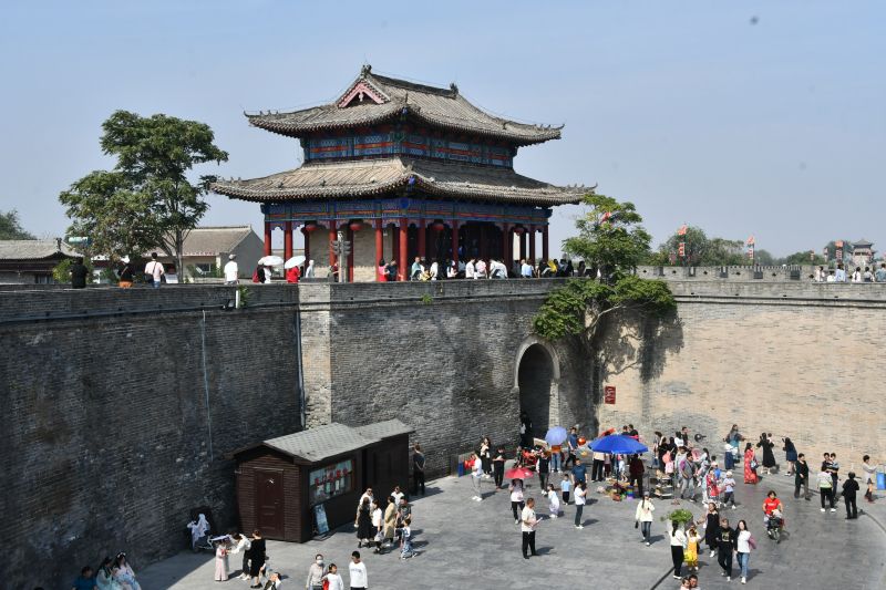 2023年10月3日,游客在邯郸市永年区广府古城游玩。河北日报记者 史晟全摄