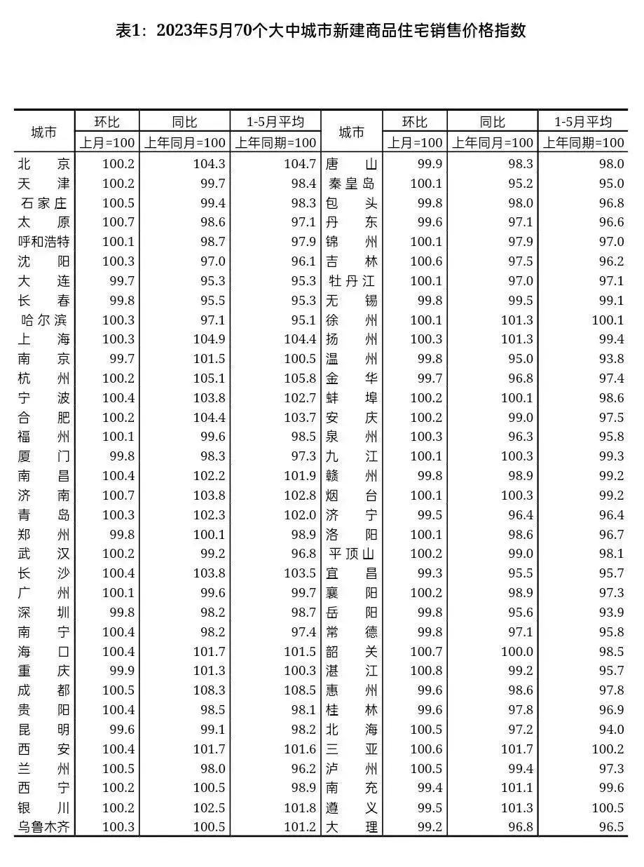2023年5月份,70个大中城市新建商品住宅销售价格环比整体涨幅回落、二手住宅环比下降。一线城市商品住宅销售价格同比涨幅回落,二三线城市同比总体降势趋缓。