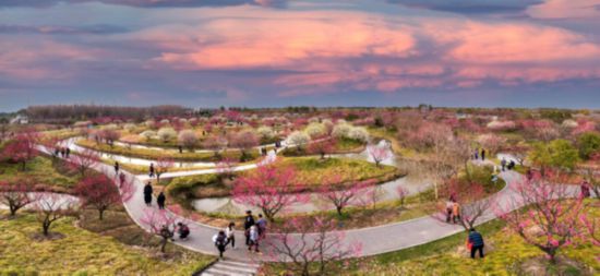 花开海上生态园是融合科普、展示、观赏游览于一体的赏花主题公园。公园由花海、梅园、秋景园、芳香花园四大园区组成。花海旖旎壮阔,片片花瓣小岛连绵起伏、姿态各异,春秋两季鲜花盛开,绚丽壮观;梅园丰富多姿,有宫粉、朱砂、绿萼、江梅、美人梅,漫步于梅溪香岭、梅影曲径、迷宫探梅,暗香浮动,心旷神怡;秋景园枫叶荻花色彩浓郁,徘徊枫林小径,红叶满坪,诗情画意;芳香花园因缘梅花,花瓣因风片片飘散,花瓣浮岛,禅意修身。
