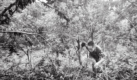 一年又一年,王明岳靠着坚持不懈的毅力,一点一点改造荒坡,很多次,王明岳从荆棘丛生的山坡翻滚下来,身上被划得鲜血淋漓;有时候,一夜之间,刚种下的小树苗被野猪毁得面目全非,王明岳只好重新栽种。