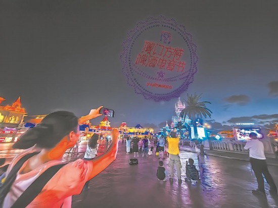 7月6日晚,厦门市同安区2024年“环东风情季”系列活动开启,中洲岛上空精彩的无人机表演吸引了众多游客。