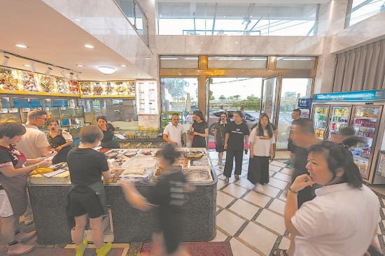 傍晚,后田社区的一家海鲜饭店涌入了众多食客。从渔船大排档到上岸经营的特色海鲜餐饮,曾经的渔民找到了新的发展路径。