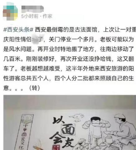 陕西西安一面馆3月内2次遇确诊游客就餐,面馆老板被网友称为“西安最倒霉面馆”。